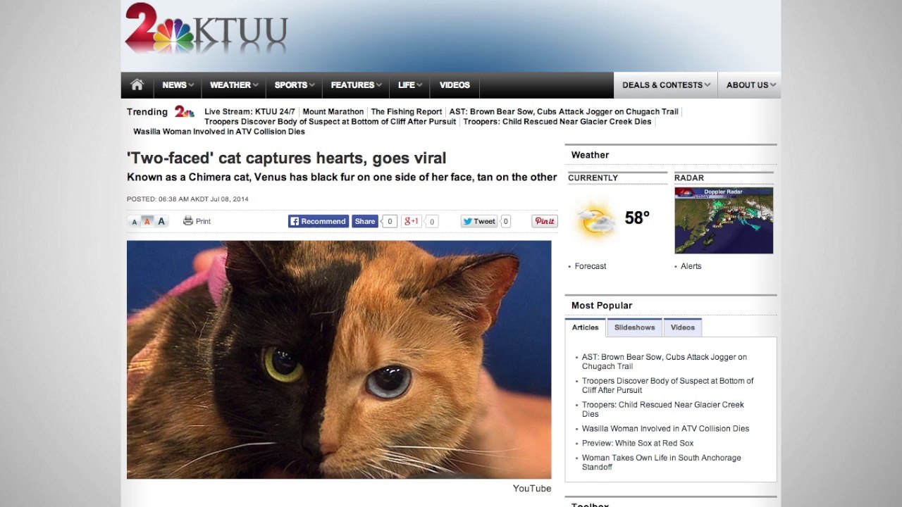We have checked our database to find news articles that are similar in content to the. The newest viral sensation from the feline world is totally two-faced and Photoshop has nothing to do with it. Venus a striking-looking cat with two different color eyes and fur that is divided.