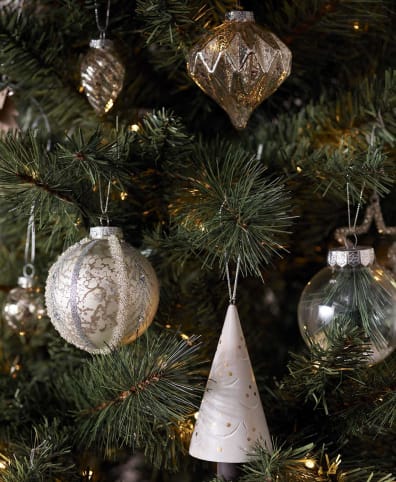 white silver and gold christmas tree decorations